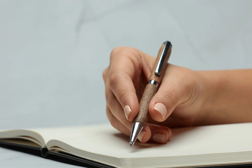 Ce stylo bille en Noyer est unique par sa forme et sa couleur naturelle.